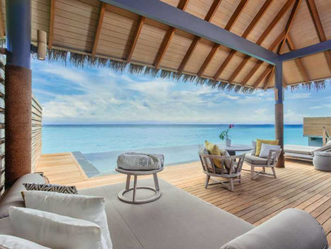 At Merana Spa, which has opulent overwater single and couple treatment rooms, an ayurvedic treatment room, a hair and nail salon, a spa boutique, and an outdoor wellness area with a warm whirlpool, cold plunge pool, sauna, and steam room, you can find inner peace with skilled therapists.